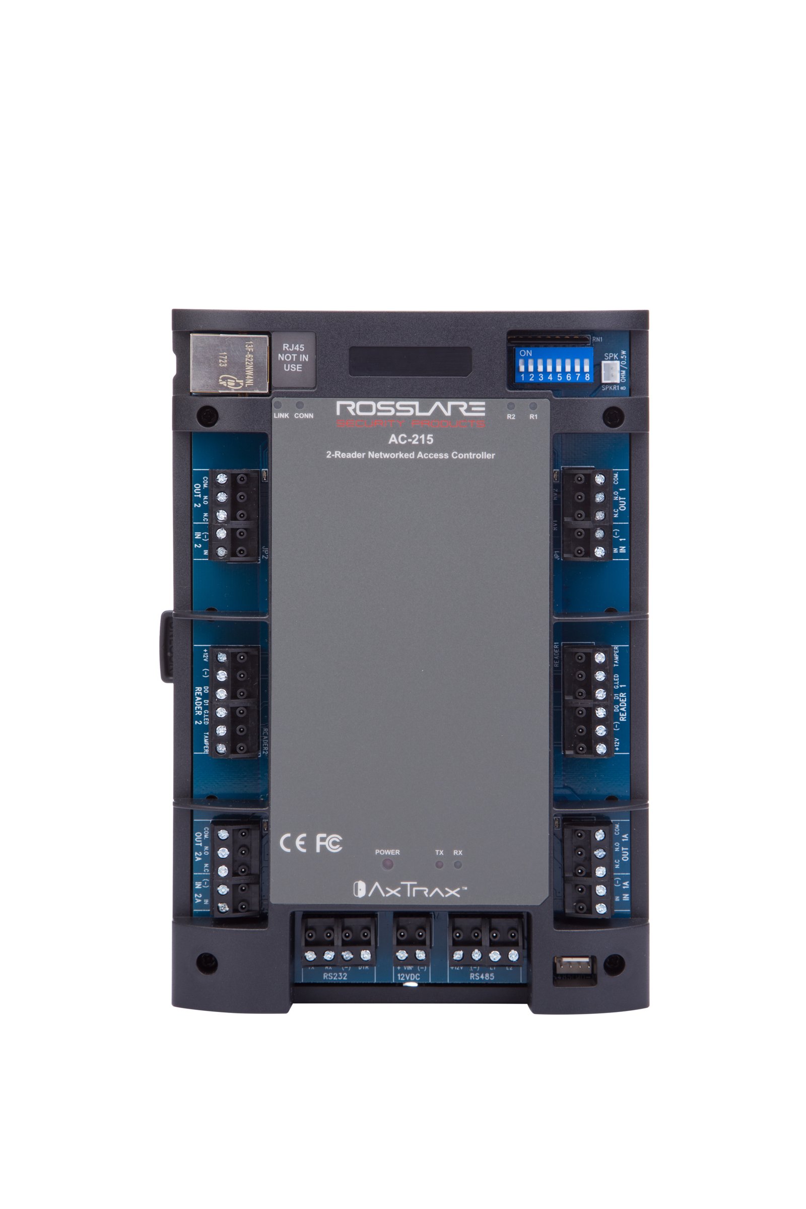 The Controller is a 2-reader networked access control and automation panel . There are two versions of the panel, one with TCP/IP networking and a second with addressable RS-485 networking . The panels may be ordered in DIN version with just the panel in a DIN housing ready for DIN rail mounting, or enclosed in a Power Management Enclosure, which includes a power supply with UPS charger, Rosslare LightBar™ and Rosslare PowerLock™ features in a secure lockable enclosure